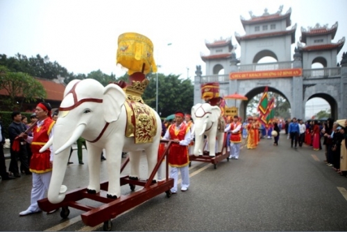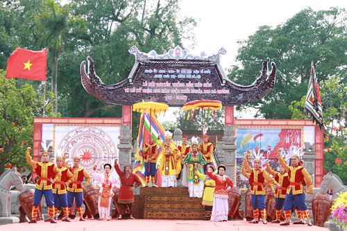 Trong quá trình lễ rước kiệu, nhiều lần đội hình rước kiệu dừng lại, thực hiện động tác đổi vai nâng kiệu qua đầu ba lần cả bốn cỗ kiệu - động tác này được thực hiện không đồng thời mà tiếp nối nhau, nên nếu nhìn tổng thể sẽ thấy hình ảnh các cỗ kiệu nhấp nhô giữa đội hình cờ sí, tựa như thân hình một con rồng đang uốn lượn, hòa quyện trong tiếng trống tiếng chiêng của dàn nhạc bát âm cung đình rộn rã và uy linh. Lễ hội đền Hai Bà Trưng Mê Linh vốn có sức sống mãnh liệt, đã gợi lên âm hưởng của quá khứ, làm nên phong cách con người nơi đây, như một sự giáo dục truyền thống, biểu thị lòng sùng kính của quê hương đối với Hai Bà. Du khách về với Mê Linh là về với quê hương Hai Bà Trưng – một vùng quê huyền thoại của kinh đô xưa, mang đậm nét truyền thống lịch sử văn hóa với những người dân cần cù sáng tạo hăng say trên những cánh đồng hoa muôn sắc thơm hương, tạo nên một vùng hoa Mê Linh nổi tiếng cung cấp hoa tới các thành phố lớn như Hà Nội, thành phố Hồ Chí Minh và các tỉnh, thành trong cả nước.