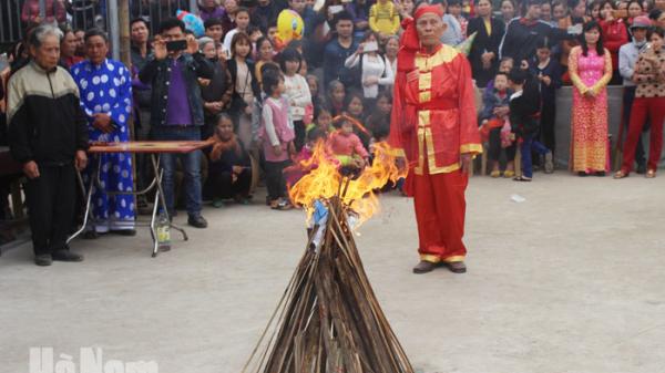 Sau lễ tế Thánh là Lễ phát hoả. Người ta đốt lên một ngọn lửa lớn để tưởng nhớ lại ngọn lửa xanh thần diệu bốc lên từ thanh gươm phát hỏa mà trời ban cho đất Liễu Đôi ở cánh Nương Cửi. Tiếp đó là Lễ trao gươm và thắt khăn đào tưởng nhớ việc chàng trai họ Đoàn nhận thanh gươm thần và tấm khăn đào. Ông Trùm là một người cao tuổi có uy tín được cử cầm trống cái cho hội trao chiếc gươm trên kiệu thánh và thắt khăn đào cho một đô vật danh dự được cử ra. Sau đó là Lễ múa cờ tụ nghĩa, điệu múa này còn có tên là "Thiên nhân kỳ trận". Điệu múa này có hai hoặc bốn người tham gia, mỗi người một lá cờ đỏ hình vuông, tiến từ hai bên kiệu thánh ra giữa dóng múa theo hiệu trống. Tiếp theo là Lễ thanh động. Lễ này bắt đầu bằng tiếng trống cái ở dóng nổi lên liên hồi cùng với tiếng chuông, cồng, mõ, thanh la tại khu vật võ và tất cả các đền chùa trong vùng đều nhất tề hưởng ứng hoà với tiếng reo hò cổ vũ sôi nổi.