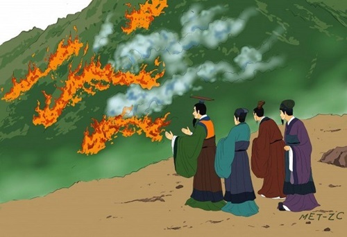 Vua ăn xong, hỏi ra mới biết đem lòng cảm kích vô cùng.Giới Tử Thôi theo phò vua Tấn Văn Công trong vòng mười chín năm trời, cùng nhau nếm mật nằm gai, khổ luyện thành tài. Về sau, Tấn Văn Công dành lại được ngôi vương, trở về làm vua nước Tấn, phong thưởng rất hậu cho những người có công khi tòng vong, nhưng lại quên mất Giới Tử Thôi. Giới Tử Thôi cũng không oán giận gì, nghĩ mình theo vua phò vua là chuyện nên làm, ông cho rằng những việc đó đâu có gì đáng nói. Vì thế, ông về nhà đưa mẹ vào núi Điền Sơn ở ẩn. Tấn Văn Công về sau nhớ ra, cho người đi tìm Tử Thôi. Nhưng vì là người không tham danh vọng, Tử Thôi nhất quyết không quay về lĩnh thưởng, Tấn Văn Công ra lệnh đốt rừng nhằm thúc ép Tử Thôi quay về. Không ngờ Tử Thôi quyết chí, hai mẹ con cùng chịu chết cháy trong rừng.